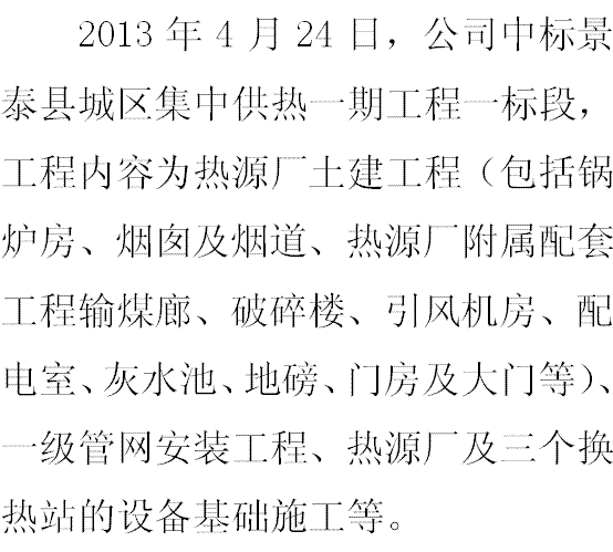 公司中標(biāo)景泰縣城區(qū)集中供熱一期工程