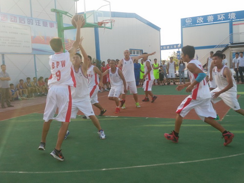 在此次的比賽中,參賽的單位有監(jiān)理3標中企建發(fā)、1標中鐵十二局、4標四川場道、3標中國華西、5標上海路橋、8標中鐵航空港、10標中水十六局、6標甘肅機械化共8支籃球隊進行參賽,建設(shè)單位也派隊參加,進行友誼賽,我們跟兄弟單位中鐵航空港,上海路橋,中水十六局、四川場道一決高下,最后入圍四強,在決賽的比賽中,我們再次遇見實力強勁的中水十六局,雙方隊員在籃球比賽現(xiàn)場氣氛熱烈,隊員們積極進攻,嚴密防守,精彩的配合,巧妙的搶斷,不時的將比賽氣氛推向高潮。天氣雖然炎熱,但絲毫沒有影響隊員的熱情,盡管兩支球隊都是業(yè)余籃球愛好者,但他們在比賽中均表現(xiàn)出較好的團隊協(xié)作能力,一群年輕人激情飛揚,帶球、傳球、搶斷、上籃,賽場對抗激烈,隊員個個揮汗如雨,最后在我方隊員的努力拼搏下,以32:30的比分,贏得第一。