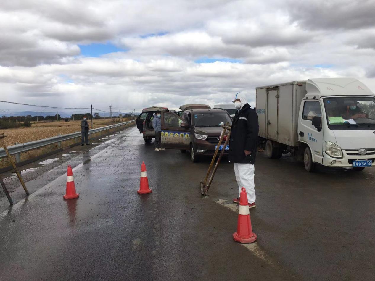 項目部黨支部書記杜騫,第一時間安排人員對北門卡口進(jìn)行布置,安排采購疫情物資(醫(yī)用口罩、防護(hù)服、測溫槍、消毒液等),與10月1日10點左右在新機場北門疫情防控卡點布設(shè)完畢,配備了12名項目部管理人員(8小時三班倒)在卡口進(jìn)行疫情防控。新機場北門疫情防控卡點人員對過往車輛、人員進(jìn)行登記,掃碼、查看行程卡、核酸報告、登記來源地、去往地點。對無48小時核酸報告的人員進(jìn)行勸返。