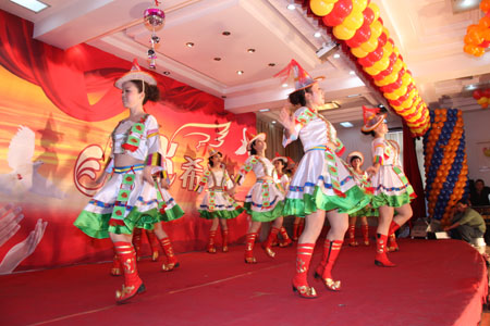 團拜會上,還為大家表演了精彩的文藝節(jié)目,這些節(jié)目都是由公司員工及員工子弟表演。