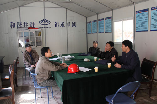 2010年3月25日,公司副總經(jīng)理周國(guó)祥和工程管理部部長(zhǎng)及相關(guān)人員對(duì)蘭內(nèi)施工工地進(jìn)行了檢查。各項(xiàng)目經(jīng)理部負(fù)責(zé)人詳細(xì)匯報(bào)了工程進(jìn)展情況。
